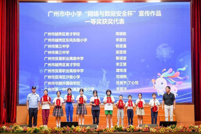 广州市中小学国家网络安全宣传周系列活动于今年7月至9月期间进行,覆盖广州市11个区的120多万名中小学生。当天,广州市教育局为2025年广州市中小学“网络与数据安全杯”宣传作品评比、线上网络安全知识竞赛的获奖学生及优秀组织单位颁奖;设置了多个互动摊位,同学们参与答题转盘、知识抽奖问答以及线圈迷宫等互动游戏,通过轻松有趣的方式学习网络安全知识,提升防范意识。